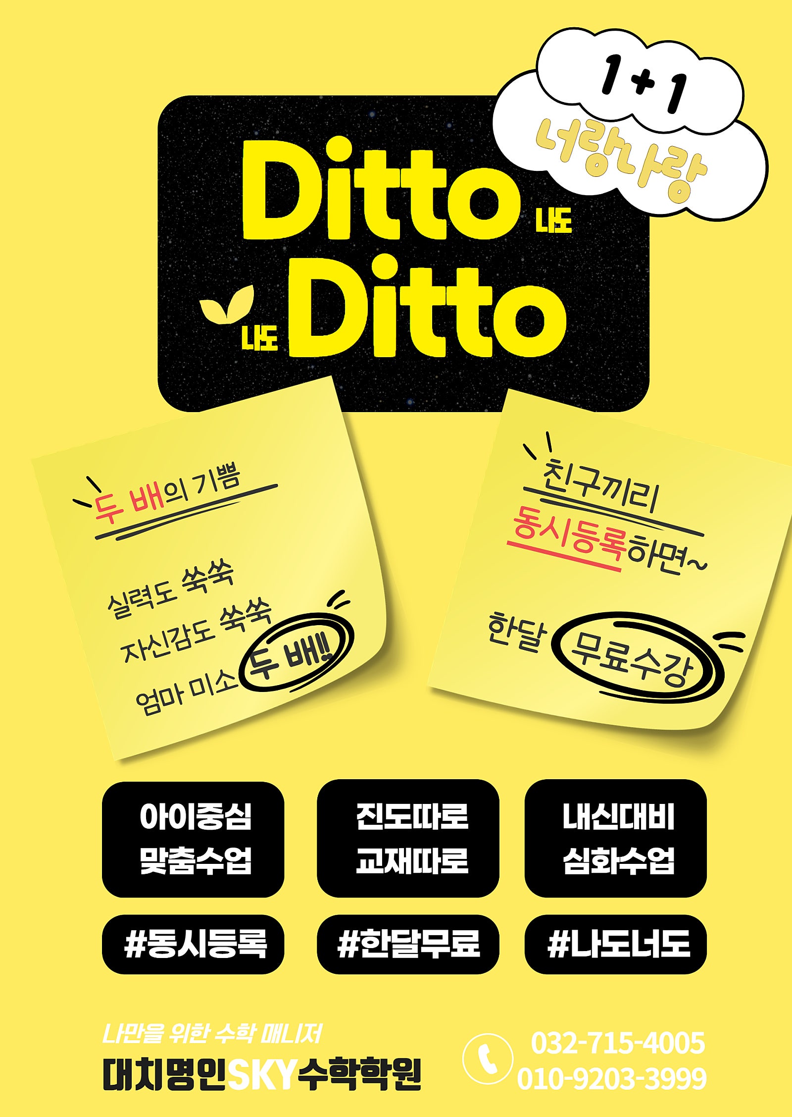 대치명인 SKY수학학원 검단캠퍼스에서 친구끼리 동시등록하면 한달 무료수강의 혜택을 드리는